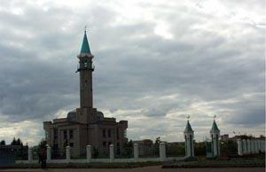 Описание: Кирпичное здание построено в 1991-1993 годах по проекту архитекторов В. П. Логинова и Е. И. Прокофьева. Мечеть расположена в центре участка на пересечении улиц Мусина и Чуйкова. Участок огорожен ажурной металлической оградой на кирпичных столбах и цоколе. Относится к типу двухэтажной двухзальной купольной мечети с диагонально-асимметричной постановкой .минарета. Общая композиция мечети построена на сочетании разновеликих объемов, врезанных один в другой по диагональной оси с юго-запада на северо-восток. Мужской и женский входы в мечеть - в северо-западном и юго-восточном углах среднего объема. Через угловые тамбуры попадаем в мужской и женский вестибюли, комнаты для омовения и санузлы, расположенные на первом этаже. На первом этаже под основным залом расположен женский молельный зал. Четырехмаршевая лестничная клетка связывает мужской зал и женскую часть мечети. По нейтральной лестнице из мужского вестибюля поднимаемся в основной купольный молельный зал и вспомогательные помещения мечети. Со второго этажа четырехмаршевая лестница ведет на трехъярусный минарет высотой 35 м (с полумесяцем). Объемной доминантой мечети является развернутый по диагональной оси высокий сомкнутый четырехгранный купол, раскрытый в интерьер мужского зала. Плоские перекрытия других объемов мечети скрыты за парапетами. Узкие, от пола до потолка, окна освещают молельные залы. Остальные помещения мечети освещены на первом этаже квадратными, а на втором - высокими прямоугольными окнами. Стены из силикатного кирпича раскрепованы широкими филенками. К сожалению, декоративное оформление интерьеров залов, предусмотренное по проекту, не выполнено. Современное мусульманское культовое сооружение в формах рационалистической архитектуры с раздельными входами и поэтажными залами для мужчин и женщин.